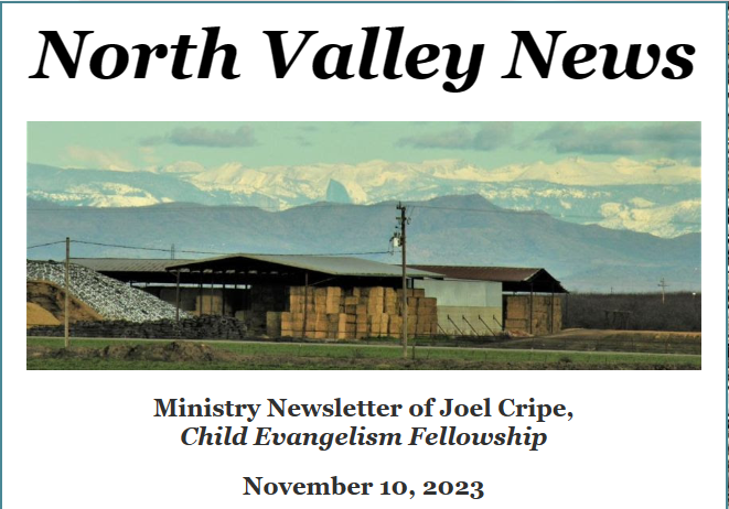 North Valley News Ministry Newsletter of Joel Cripe, Child Evangelism Fellowship January 18, 2024 Miracle in Newman Tim Weimer leads two children to Christ during a Newman Party Club. Party Club evangelism? You bet! First Baptist in Newman teaches a weekly Good News Club(R) at Von Renner Elementary School, but during the Christmas...