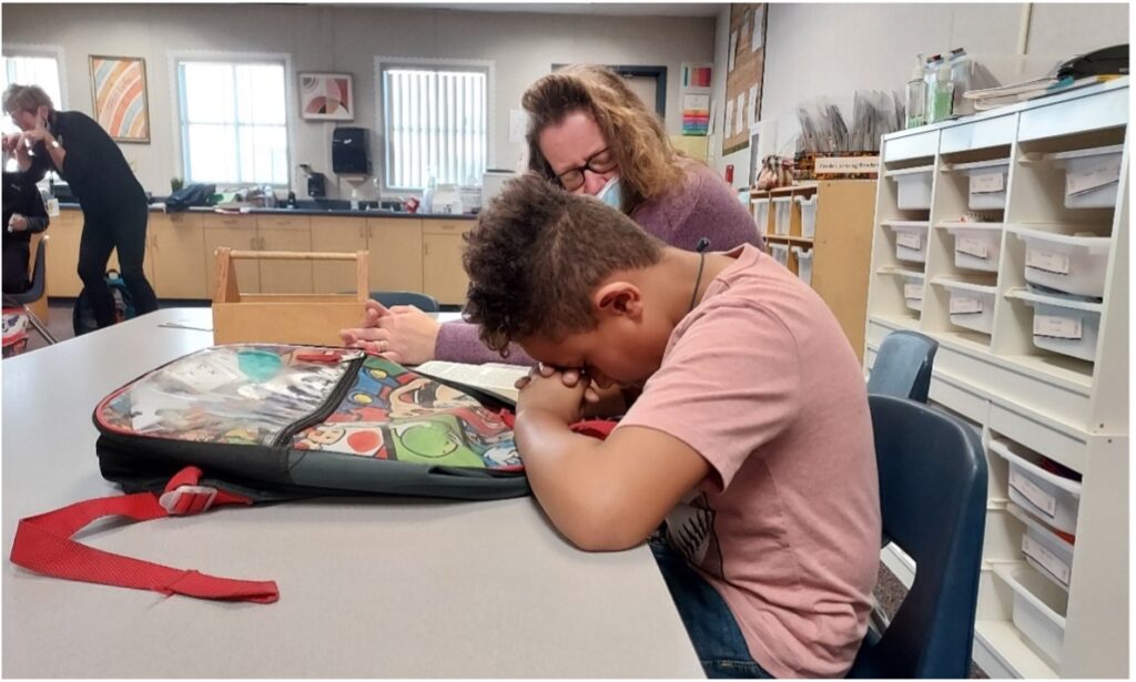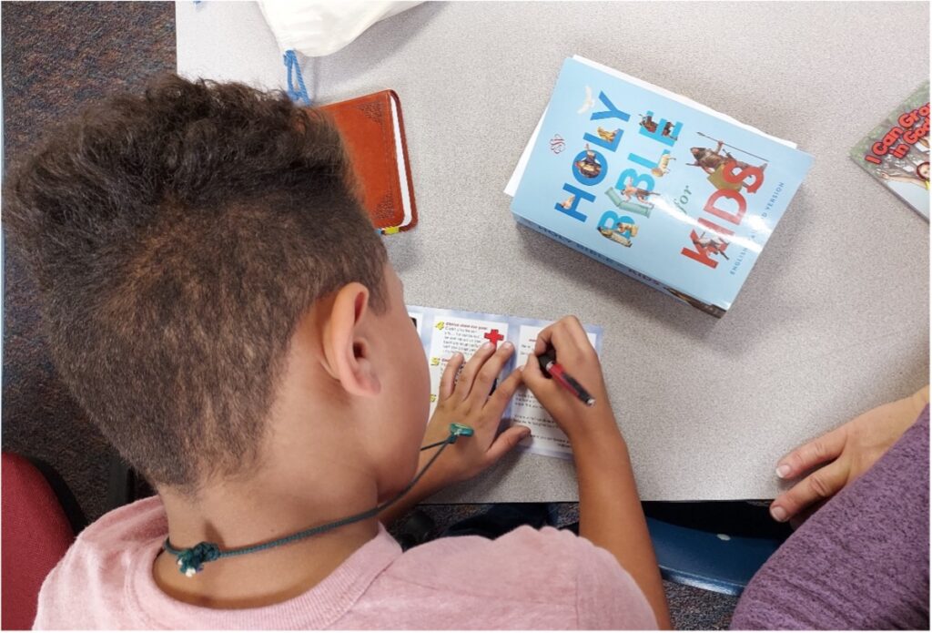 was beginning to be a disruption for the two girls, and I didn’t want to let the girls miss out on receiving Christ. As I struggled to contain the situation, Nadya came into the right side of my field of vision. I quickly got her attention and promptly had her escort the two boys to the other side of the room to take care of counseling them. Shortly after I did, one of the two returned to the larger classroom, while the other boy, Max, remained seated.
